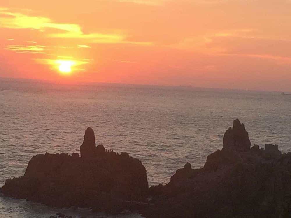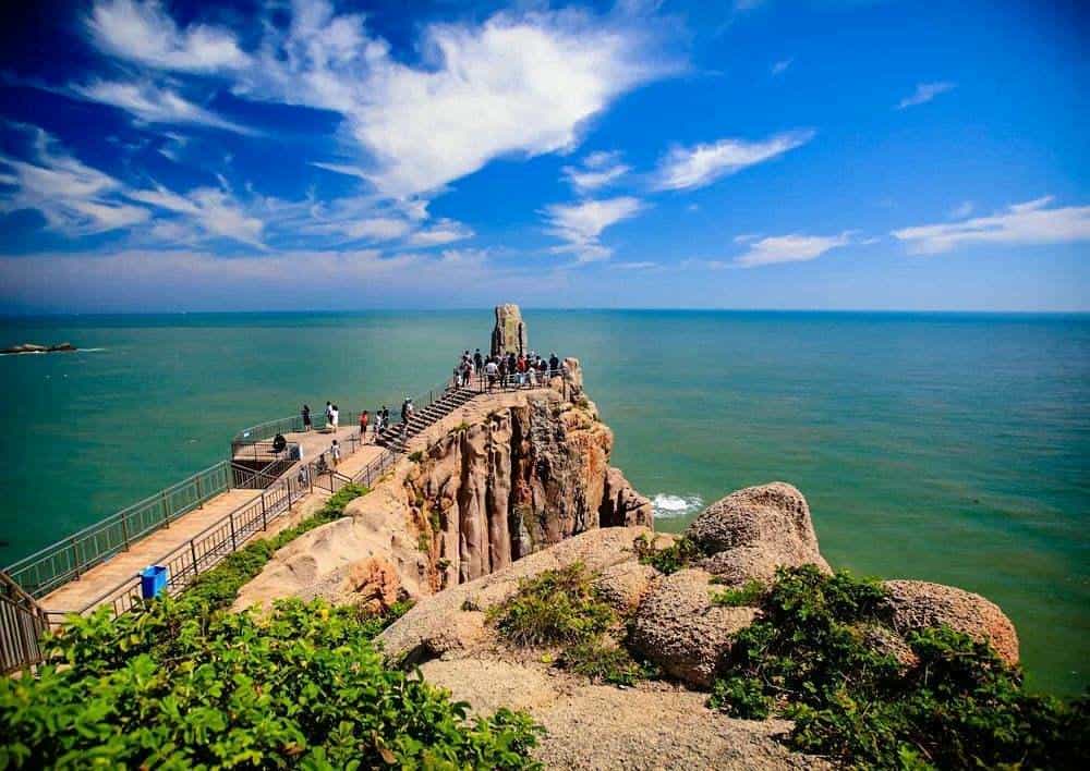 成山头,又名“天尽头”,位于山东省荣成市龙须岛镇,因地处成山山脉最东端而得名。成山头三面环海,一面接陆,与韩国隔海相望,仅距94海里,是中国陆海交接处的最东端,最早看见海上日出的地方,自古就被誉为“太阳启升的地方”,有“中国的好望角”之称。成山头风景区最高点海拔200米,东西宽0.75公里,南北长1公里,占地面积2.5平方公里。这里群峰苍翠连绵,大海浩瀚碧蓝,峭壁巍然,巨浪飞雪,气势恢宏,是理想的旅游避暑胜地。一九八八年被国务院批准为“国家级风景胜区”。主要有海驴岛、始皇庙、秦代立石、拜日台、秦桥遗迹、望海亭、观涛阁、镇龙石和野生动物园著名景点。