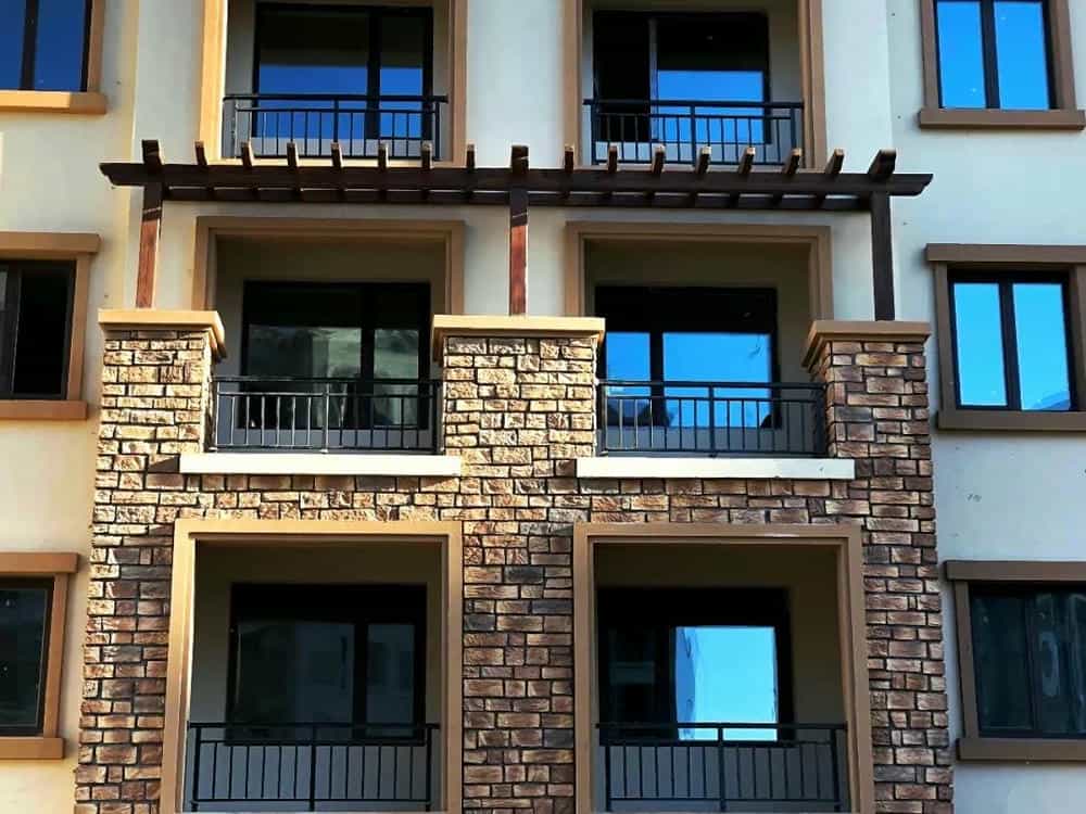 虽然天气转凉,建筑工人们毫不懈怠,经过数月的匠心打磨,现部分楼层外墙墙面粉刷装饰完成、窗户玻璃和铁艺护栏也已经安装完成。